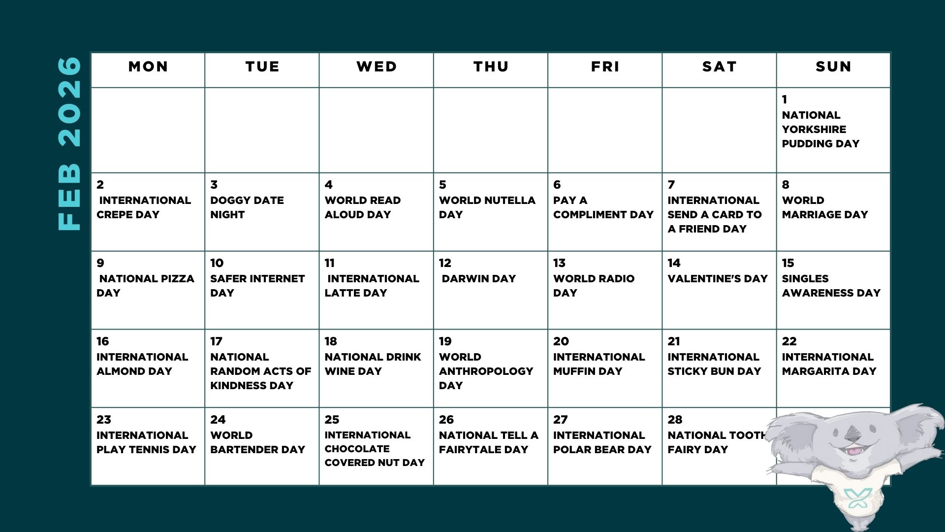 Yes, this is an actual day in your social media content calendar February 2026! Your partner isn’t the only one you need to take on more dates; it’s your doggie’s time to be pampered and loved. Take them on their favourite walk or to an evening dog-friendly cafe. The choices are endless and are the paw-fect way to show how much your furry friend means to you. Vlog your entire experience and share with your followers all the fun.